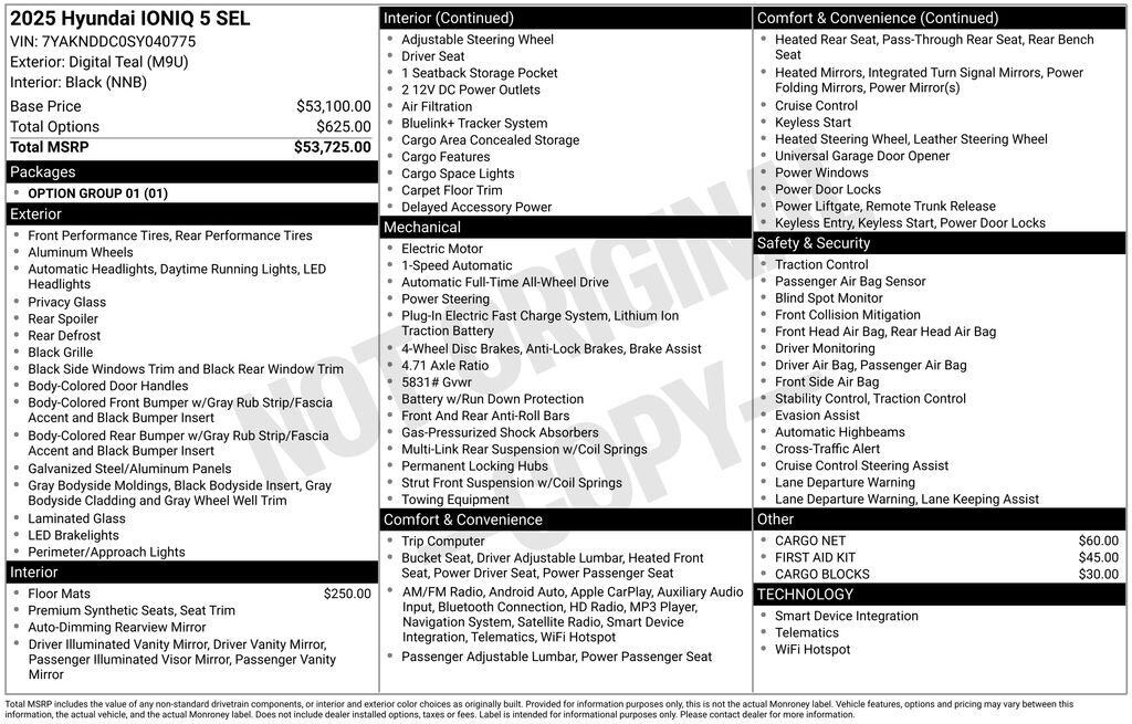 Digital Teal 2025 Hyundai IONIQ 5 SEL AWD 1-Speed Automatic Electric Motor 110/87 City/Highway MPG