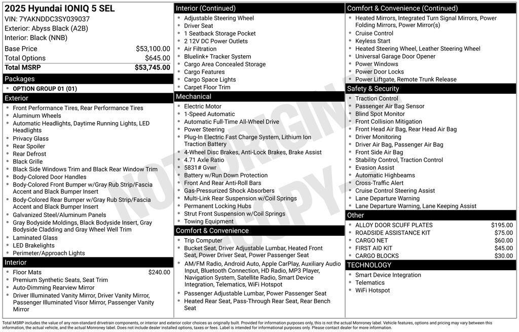 Abyss Black 2025 Hyundai IONIQ 5 SEL AWD 1-Speed Automatic Electric Motor 110/87 City/Highway MPG
