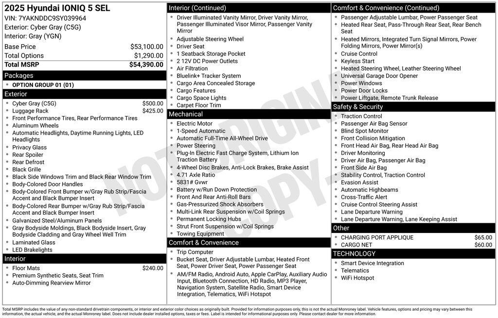 Cyber Gray 2025 Hyundai IONIQ 5 SEL AWD 1-Speed Automatic Electric Motor 110/87 City/Highway MPG
