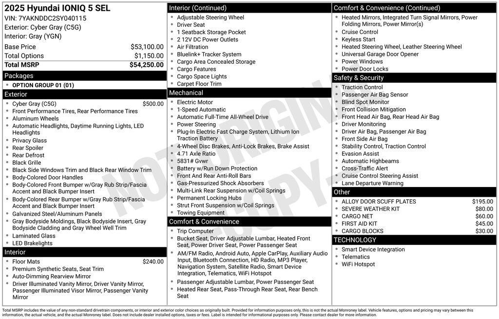 Cyber Gray 2025 Hyundai IONIQ 5 SEL AWD 1-Speed Automatic Electric Motor 110/87 City/Highway MPG