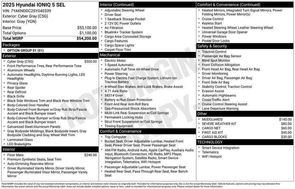 Cyber Gray 2025 Hyundai IONIQ 5 SEL AWD 1-Speed Automatic Electric Motor 110/87 City/Highway MPG