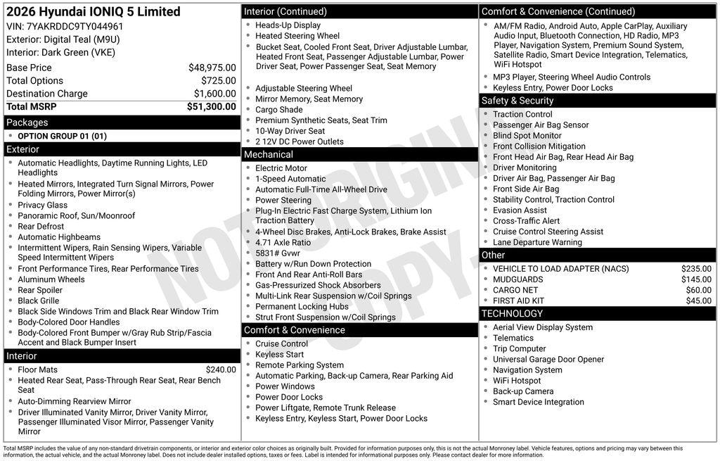 Digital Teal 2026 Hyundai IONIQ 5 Limited AWD 1-Speed Automatic Electric Motor 110/87 City/Highway MPG