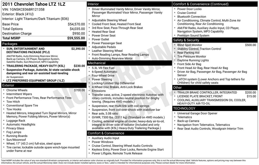 Black 2011 Chevrolet Tahoe LTZ 4WD 6-Speed Automatic Electronic with Overdrive Vortec 5.3L V8 SFI Flex Fuel Iron Block