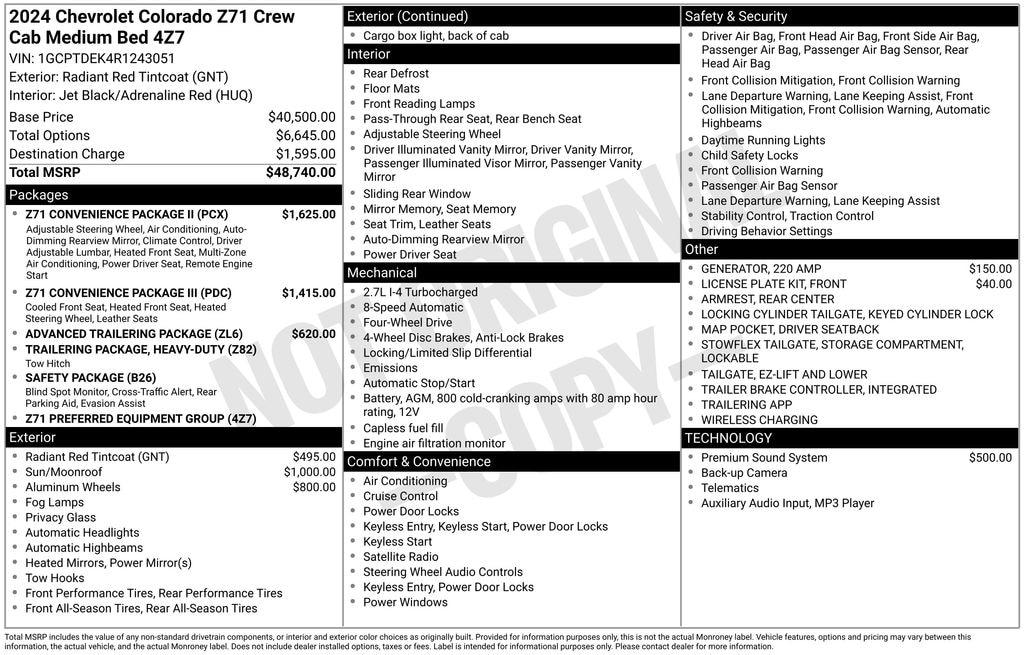 • Z71 Convenience Package II$1,625