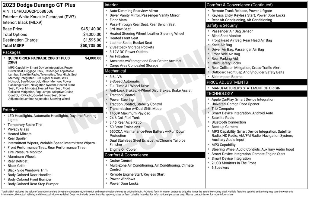 White Knuckle Clearcoat 2023 Dodge Durango GT Plus AWD 8-Speed Automatic 3.6L V6 24V VVT